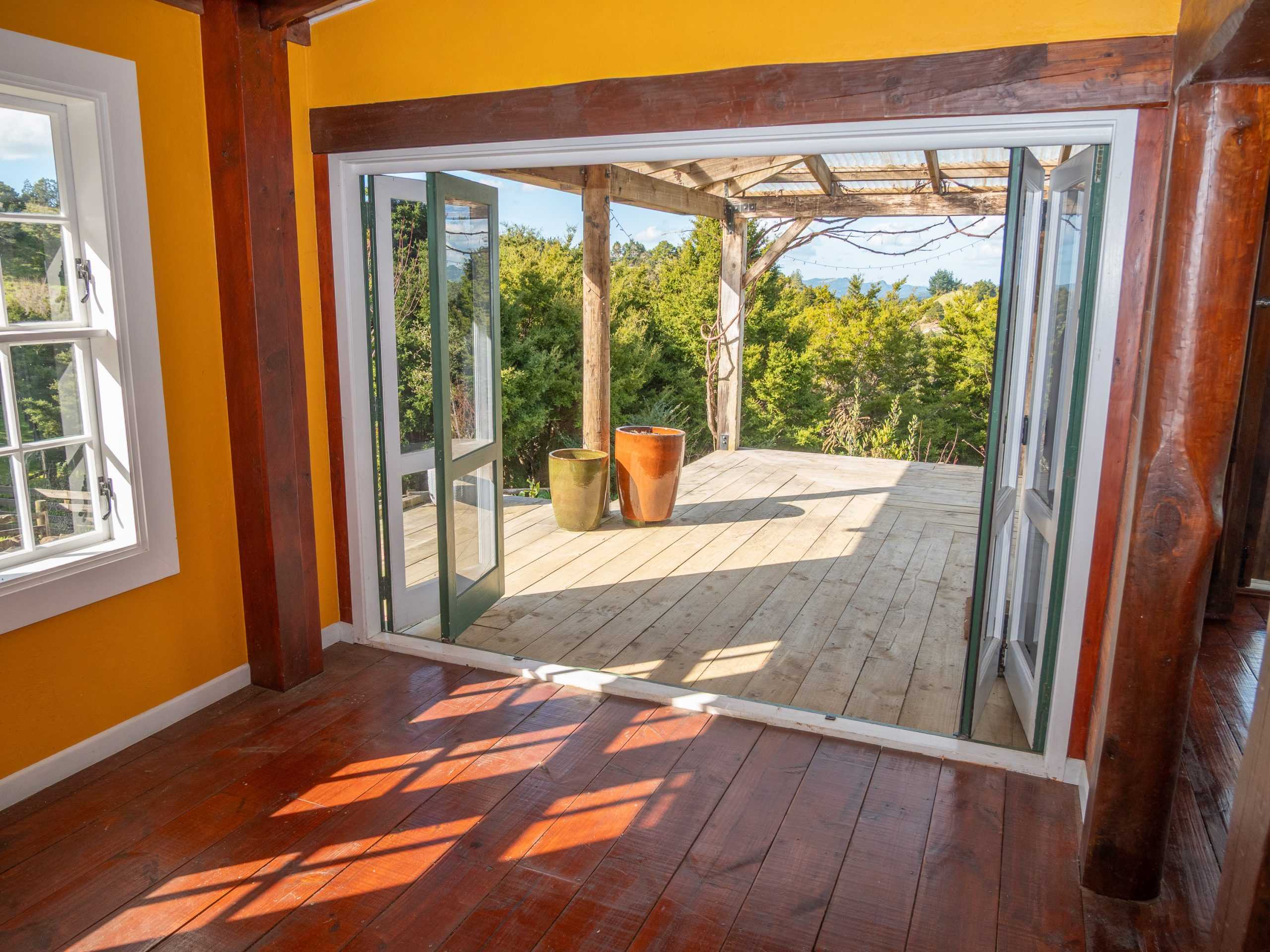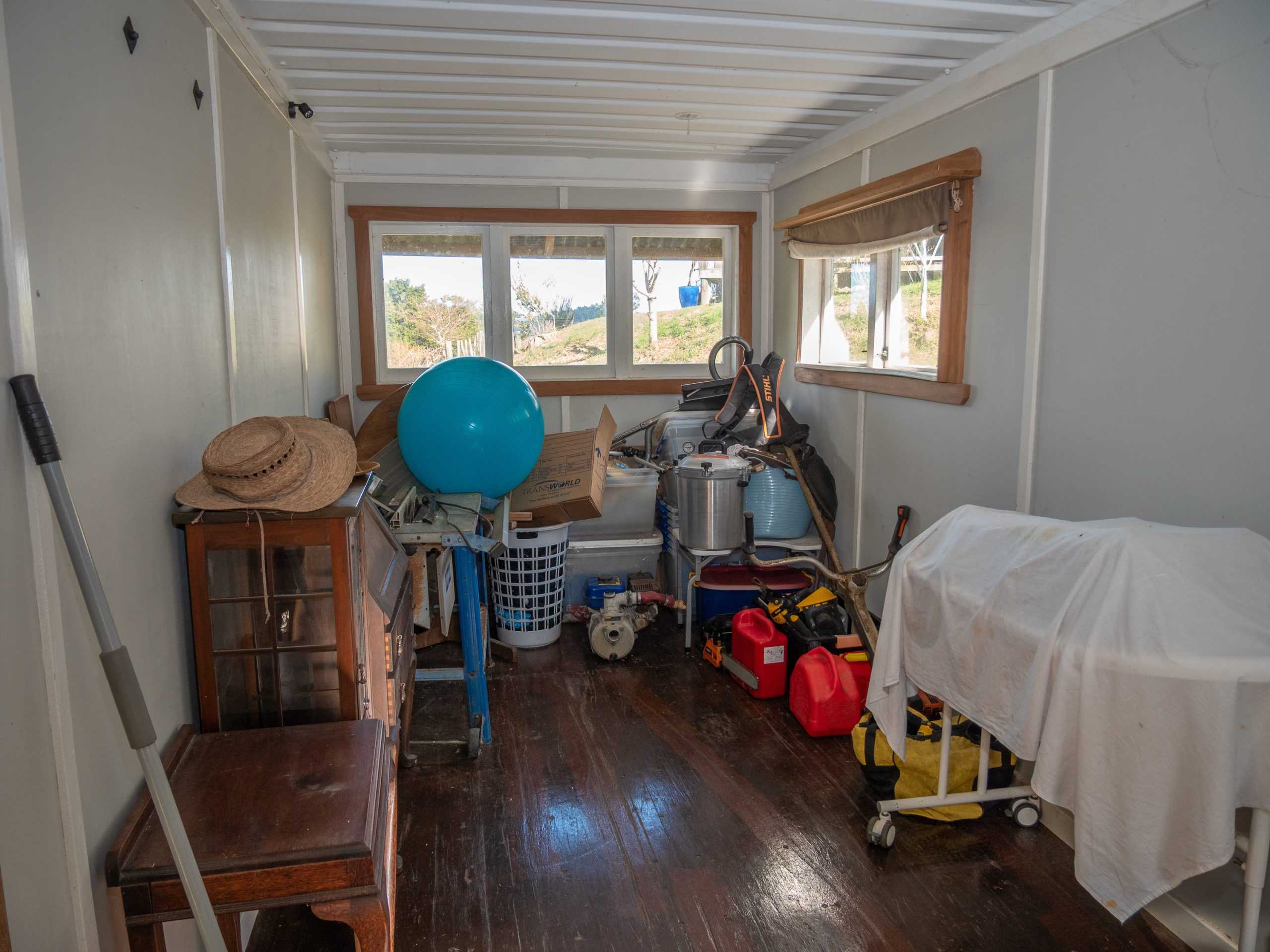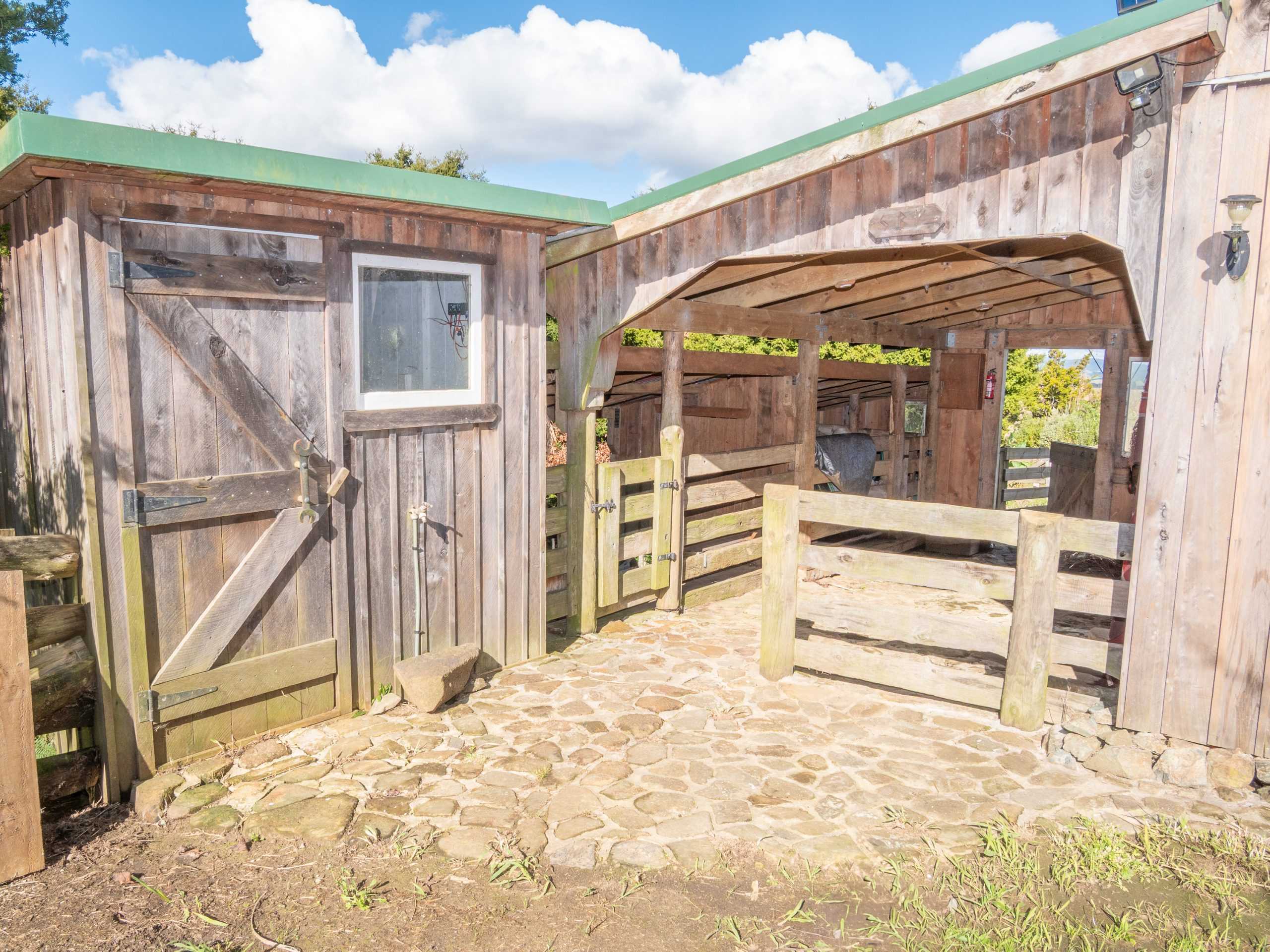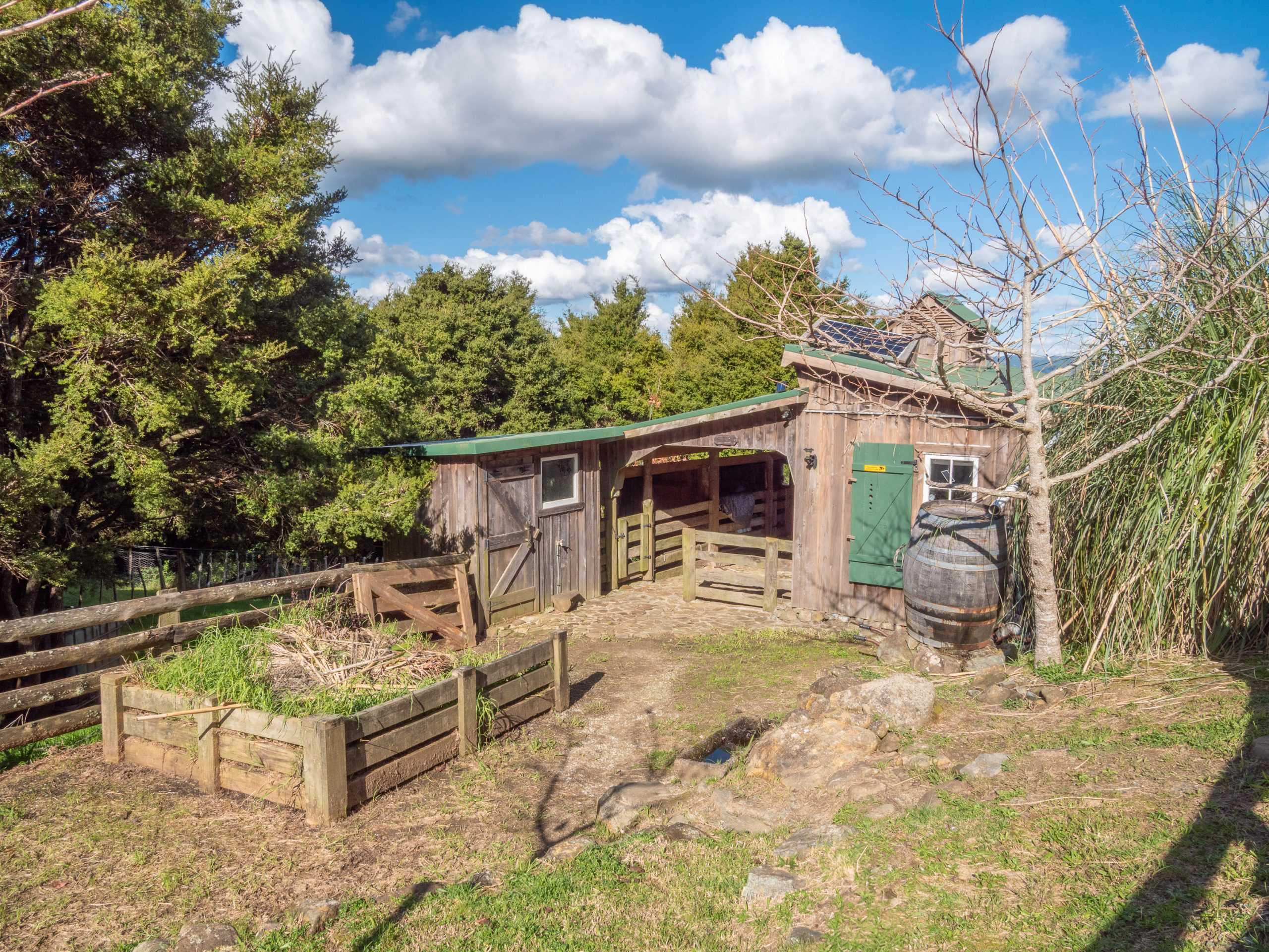 Surrounding grounds comprise a varied patchwork of pasture and regenerating native bush with plenty of space to accommodate animals, orchards, and gardens. There are four fenced paddocks (and one partially fenced area) that can accommodate stock right away, and the barn provides warm sheltered areas for animals over-winter, and space to store feed. The driveway continues past the house to a turnaround area that provides access to the land below and additional guest parking.