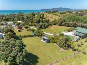 It has well-established lawns but is otherwise a blank canvas ready to be developed into a lovely seaside home. Power, phone, and mains wastewater connections are available at the boundary, and there is ability to connect to the local water supply scheme if desired.