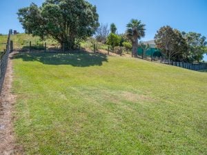 The near flat contours and relatively uniform shape of this section allow for a great deal of flexibility in terms of building position and design, and a lower cost and easier build. Boundaries are nicely established with wooden fencing, hedging and a low retaining wall in place, plus a young Pohutukawa on the roadside edge. Other than that, its a well-formed blank slate ready for your imagination.