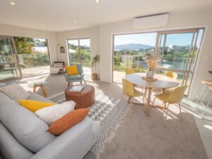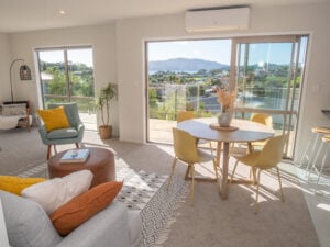 Easy walking distance from the golden sands of Coopers Beach is this fresh and modern 2 bedroom / 2 bathroom home with 432sqm of easy-care landscaped grounds. The 82 sqm home has been cleverly designed to create a light and spacious interior with pleasant sea views, nicely integrated north-east facing decking, and plenty of built in space for all the essentials. This property is a brilliant option for first home buyers, those seeking an easy to manage holiday home, or property owners looking to downsize to a convenient beachside location.