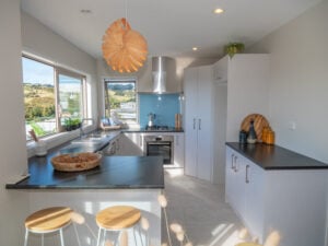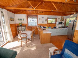 Presented to the market in immaculate condition the home has been repainted inside and out, refurbished with new carpet and tiling, and includes double glazing throughout. The property enjoys an elevated position with plenty of sunshine and views out towards Doubtless Bay and over Coopers Beach township. Access is via a concrete drive that curves down from the roadside to a covered carport and guest parking bay. Once inside a short hallway leads to a spacious open plan living area that blends out to the deck and sea views. A semi-partitioned kitchen includes ample bench and storage space, high-quality stainless-steel appliances, and sea views.